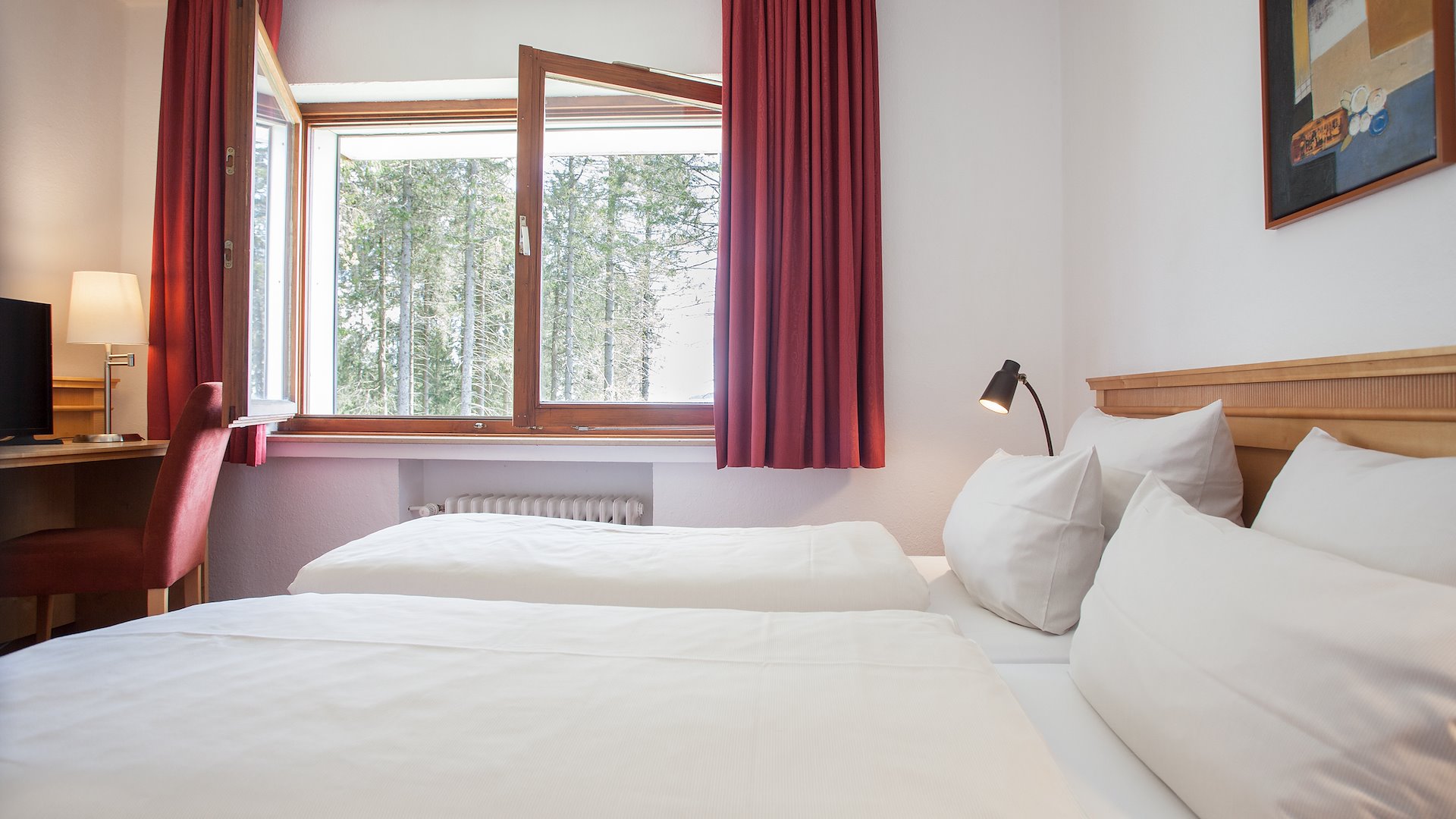 Komfortabel, ruhig und mit Bergblick – unsere Doppelzimmer laden zum Wohlfühlen ein. Eine Flasche Mineralwasser erwartet Sie zur Begrüßung.