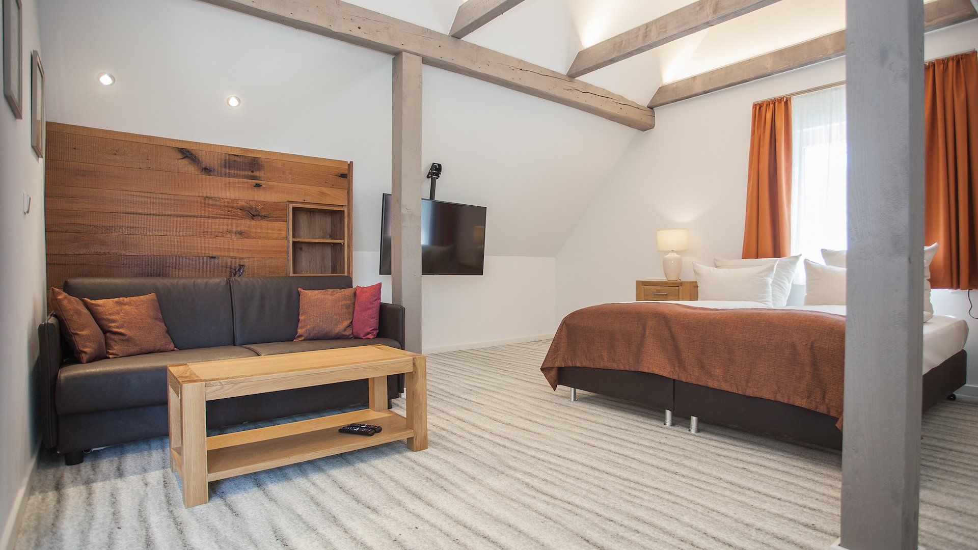 Unsere Einzelzimmer sind komfortabel ausgestattet mit Schreibtisch, Kleiderschrank, modernem Flachbild-TV und kostenfreiem WLAN. Die Nutzung unseres Hallenbades und der drei Saunen ist für Hausgäste inklusive. Auf Wunsch stellen wir gern Bademäntel bereit oder reservieren Massagen und Wellnessanwendungen. Eine Flasche Mineralwasser steht zur Begrüßung bereit.