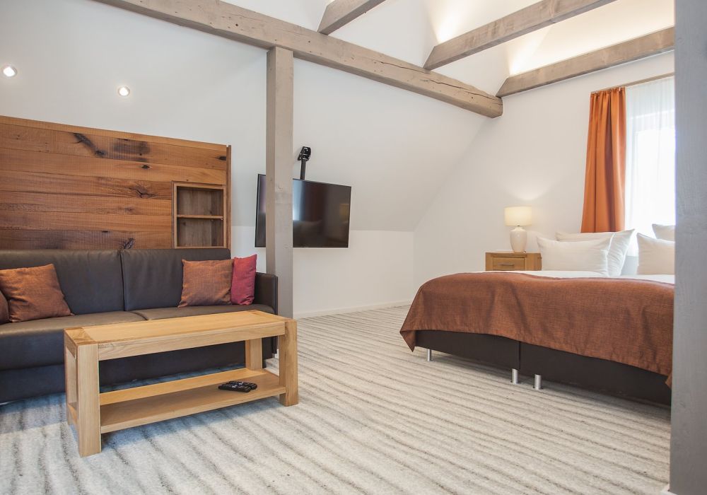 Unsere Beste: Die frisch gebackene Suite für unsere Brautpaare. Eine Balkon - Terrasse mit Ausblick auf die wunderschöne Natur rundum unser Hotel runden das Bild von Komfort, Großzügigkeit und Romantik vollends ab.