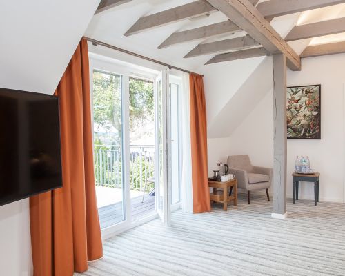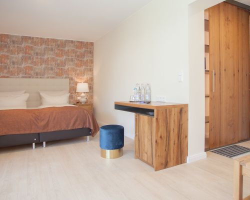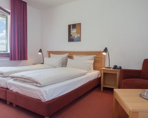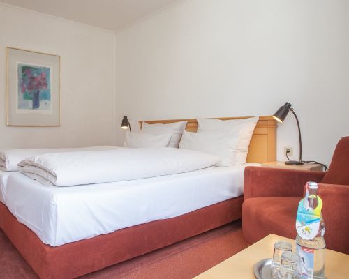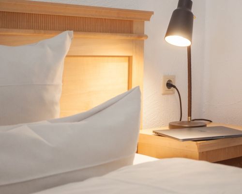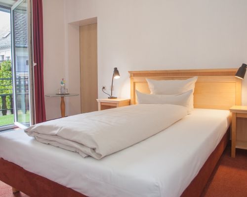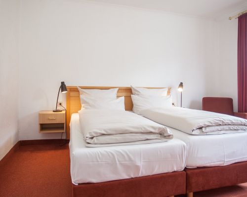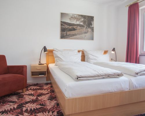 Comfortabel, rustig en met uitzicht op de bergen – onze tweepersoonskamers met balkon nodigen uit om te ontspannen. Bij aankomst staat er een fles mineraalwater voor u klaar.